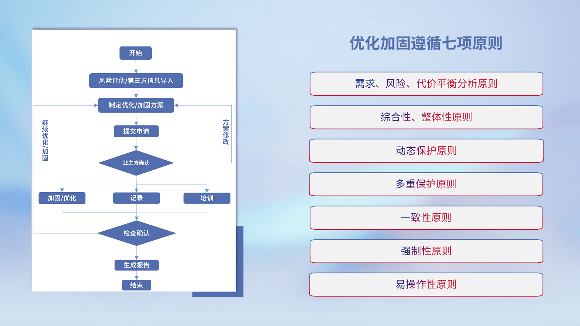 最大程度利用现有资产,,对评估发现的问题进行封堵与整改,,,,防止漏洞被利用,,,,提升整体网络安全性,,为客户带来高标准的优化加固服务。。。