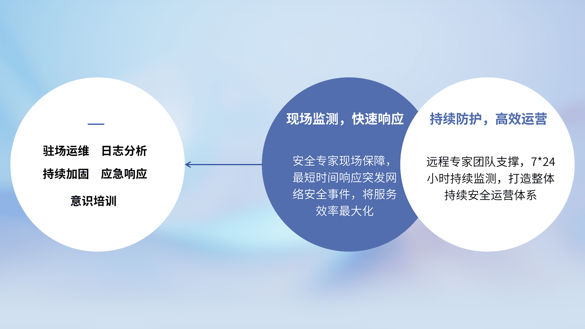 针对客户行业特性,,,,提供专属的一站式安全管理服务,,帮助客户全面感知网络空间威胁,,通过安全专家的线上、、、、线下防护支持,,实现风险闭环,,将安全保障常态化,,,,为客户打造常态化安全运维运营服务。。。。