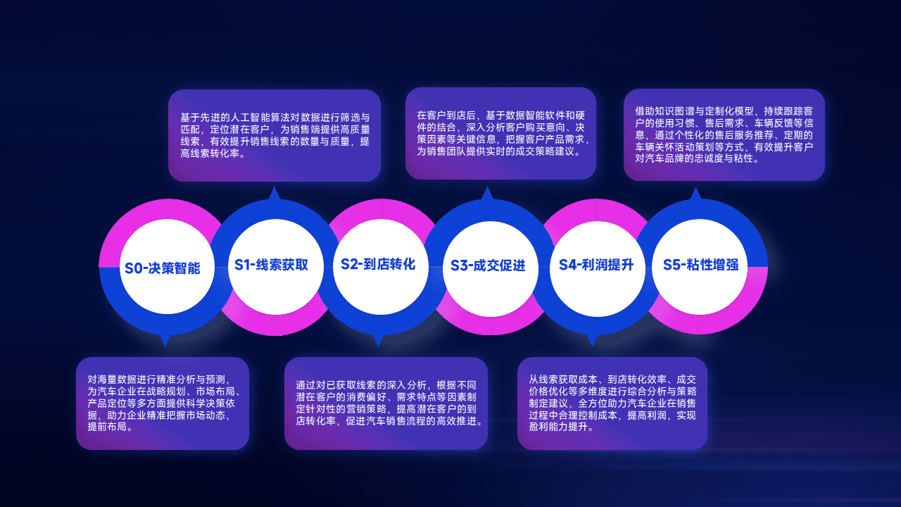 通过拓宽潜在客户来源、、、优化线索分配并提高到店转化率,,以增强销售效率。。。同时,,,利用线索数据不断优化分析模型,,有效提升转化率,,扩大营销影响力。。
